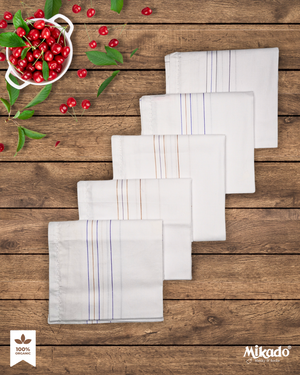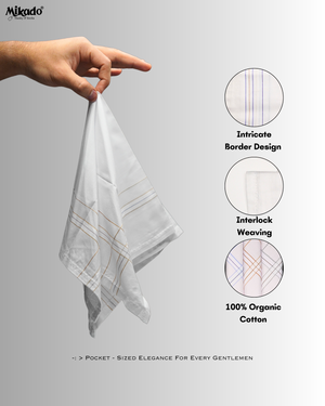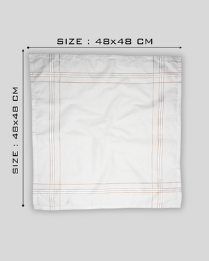 Expertly crafted using a one-of-a-kind process of mercerization, which filters all the impurities from cotton and makes it pure, exclusively perfected by us. The meticulously stitched white border adds a touch of distinction, making this handkerchief stand out while maintaining an understated charm.