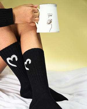 These socks are designed with your utmost comfort in mind, featuring a long elastic grip that ensures a secure fit throughout the day. Adorned with cute heart prints, these socks bring an adorable element to your wardrobe.