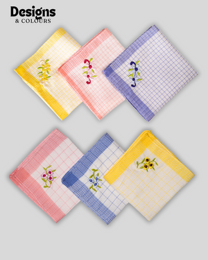 Flora-Premium Embroidery 100% Cotton Hanky (size- 30X30 cm)