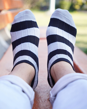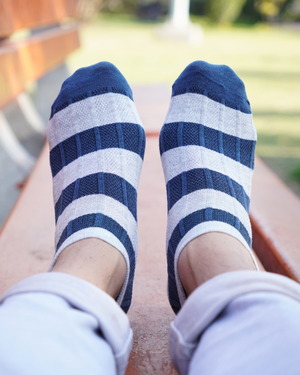Revolutionize your sock game with our meticulously designed Men's Striped Ankle Socks, where comfort meets contemporary style. Embrace the dynamic blend of classic stripes, superior quality, and versatility in every step.