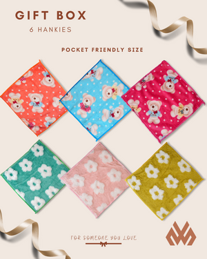 This Teddy Flower Premium Hanky is the perfect gift for women and kids. Made with high-quality teddy fabric, it offers a soft touch and elegant look. A practical yet stylish accessory for any occasion, it's a must-have in any wardrobe. Comes in a beautiful gift box for easy gifting.