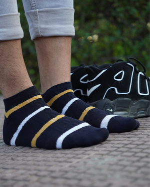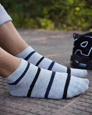 Revolutionize your sock game with our meticulously designed Men's Striped Ankle Socks, where comfort meets contemporary style. Embrace the dynamic blend of classic stripes, superior quality, and versatility in every step.