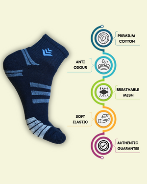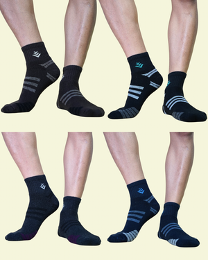 Engineered with advanced cotton towel fibres, these socks excel at quickly absorbing and wicking away moisture, keeping your feet dry and comfortable during intense workouts.These socks are a game-changer in the world of sports and fitness.